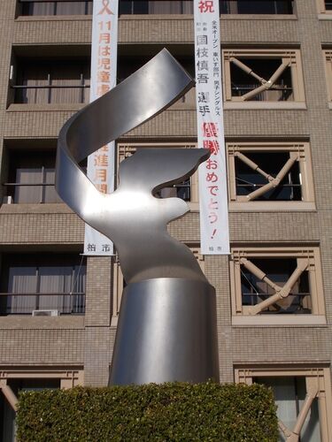 戻る 柏市役所 《平和祈念碑》(1986.12.18設置)。制作チームは、原作:高橋文雄、監修:喜屋武貞夫、制作:島久幸。市役所庁舎裏手の階段上に設置。 《初代市長 鈴木悦三像》(1961/1961.10.29設置)。朝倉文夫監修、政義制作(って、政義って誰?調査中)…
